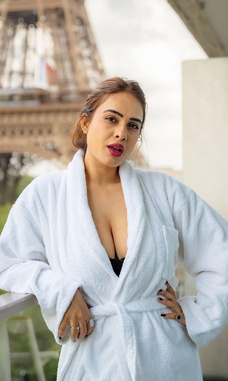 तस्वीरों में नेहा होटल की बालकनी से एफिल टावर के साथ बाथरोब में बोल्ड पोज देती नजर आ रही हैं.